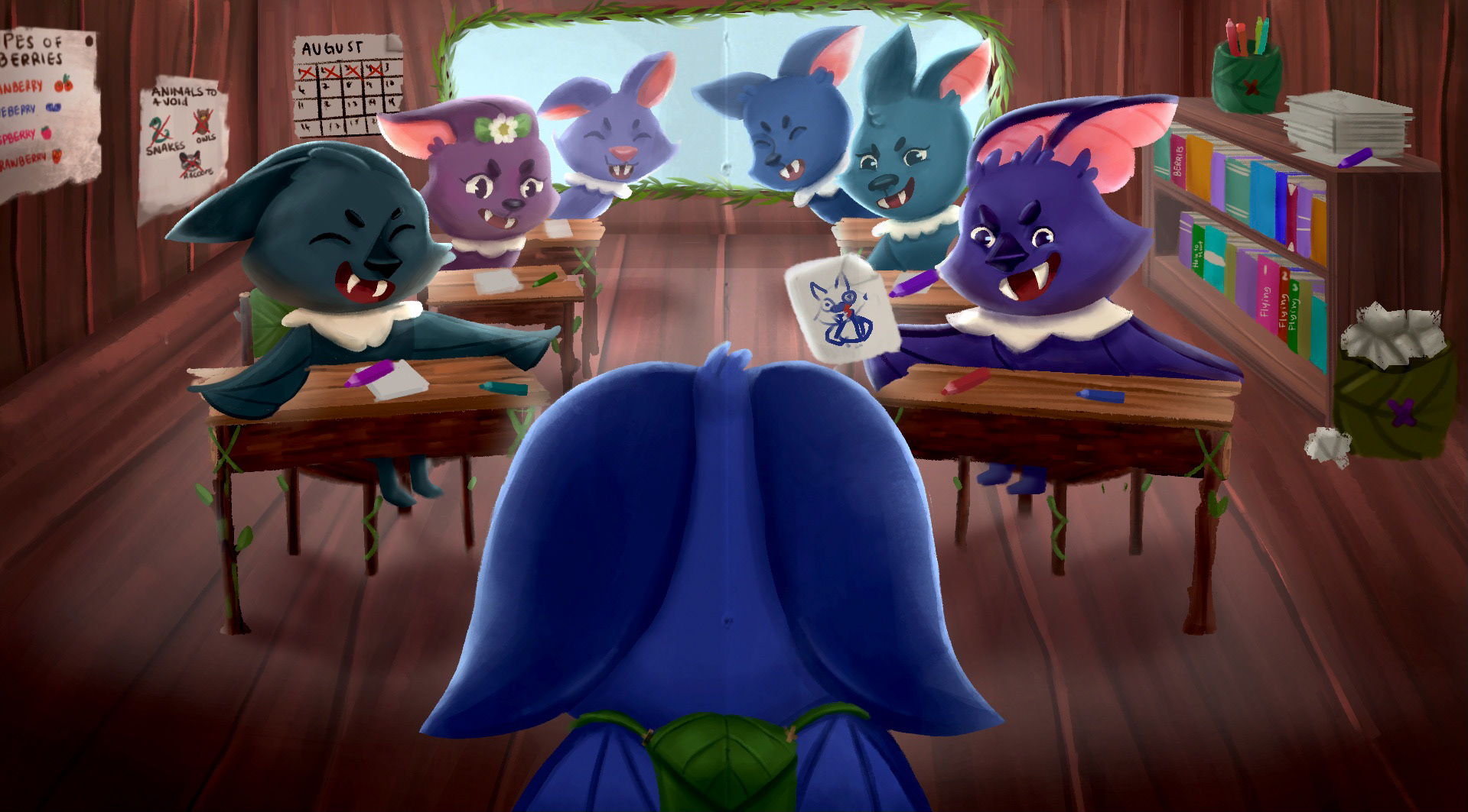 Background designs, sketches, and paintings of interiors and exteriors.